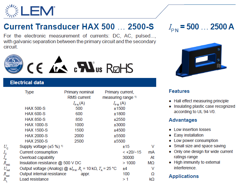 LEM 电流传感器 HAX 500...2500-S